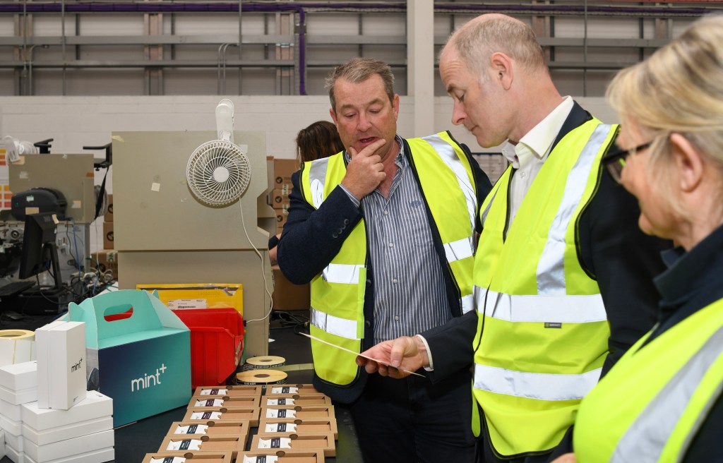 Minister Smyth was welcomed by Fónua’s Head of Circular Economy Philip Wilson to its premises in North Dublin where he was given a tour of the Fónua facilities, learning more about its circular economy model and its sustainability efforts to reduce electronic waste through the repurposing of phones.
